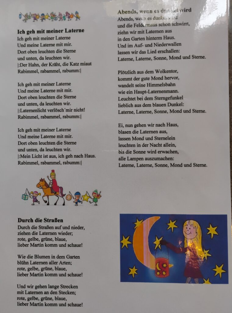 Bitte übt die Martinslieder damit bei unserem Laternenumzug